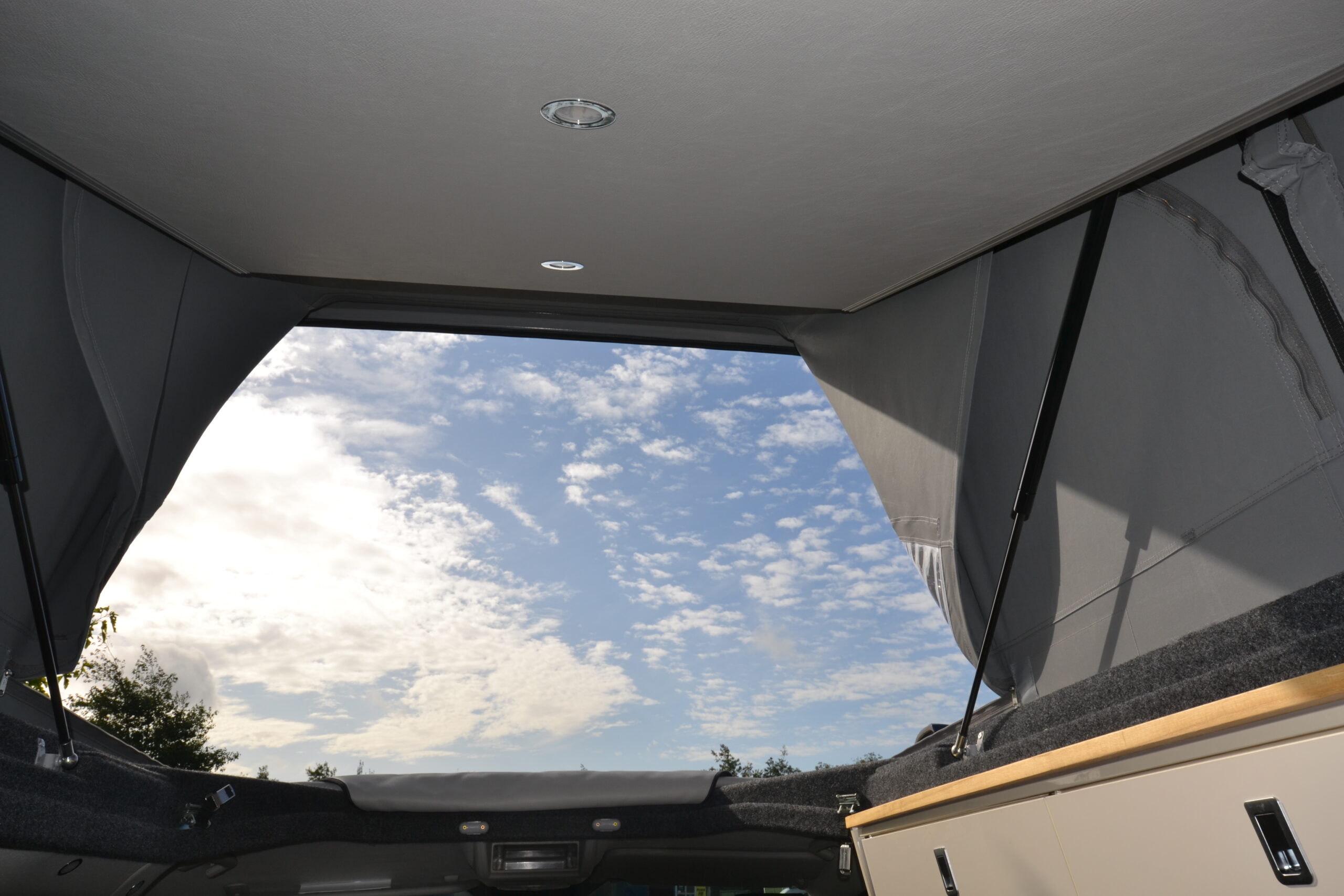 The highest quality Pop-Top Roof System with Integrated Roof Bed on Froli Springs and panoramic roof tent to really enjoy the views. An underslung winterproof 40L Fresh Water Tank with Level Indicator and a 40L winterproof Wastewater Tank.